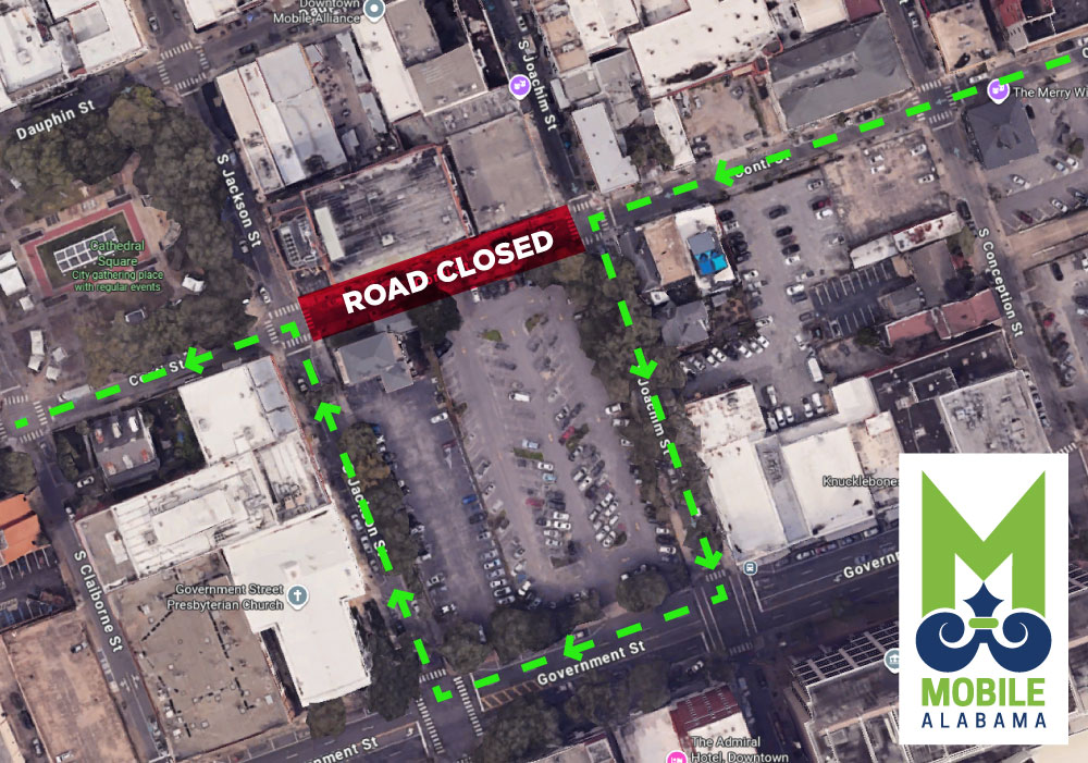 The City of Mobile will be completely replacing the roof at the historic theatre in downtown Mobile. To support the equipment and materials needed for the project, this section of Conti Street will remain closed for approximately six to eight weeks. The sidewalks along this portion of Conti Street will also be closed to ensure the safety pedestrians and workers.